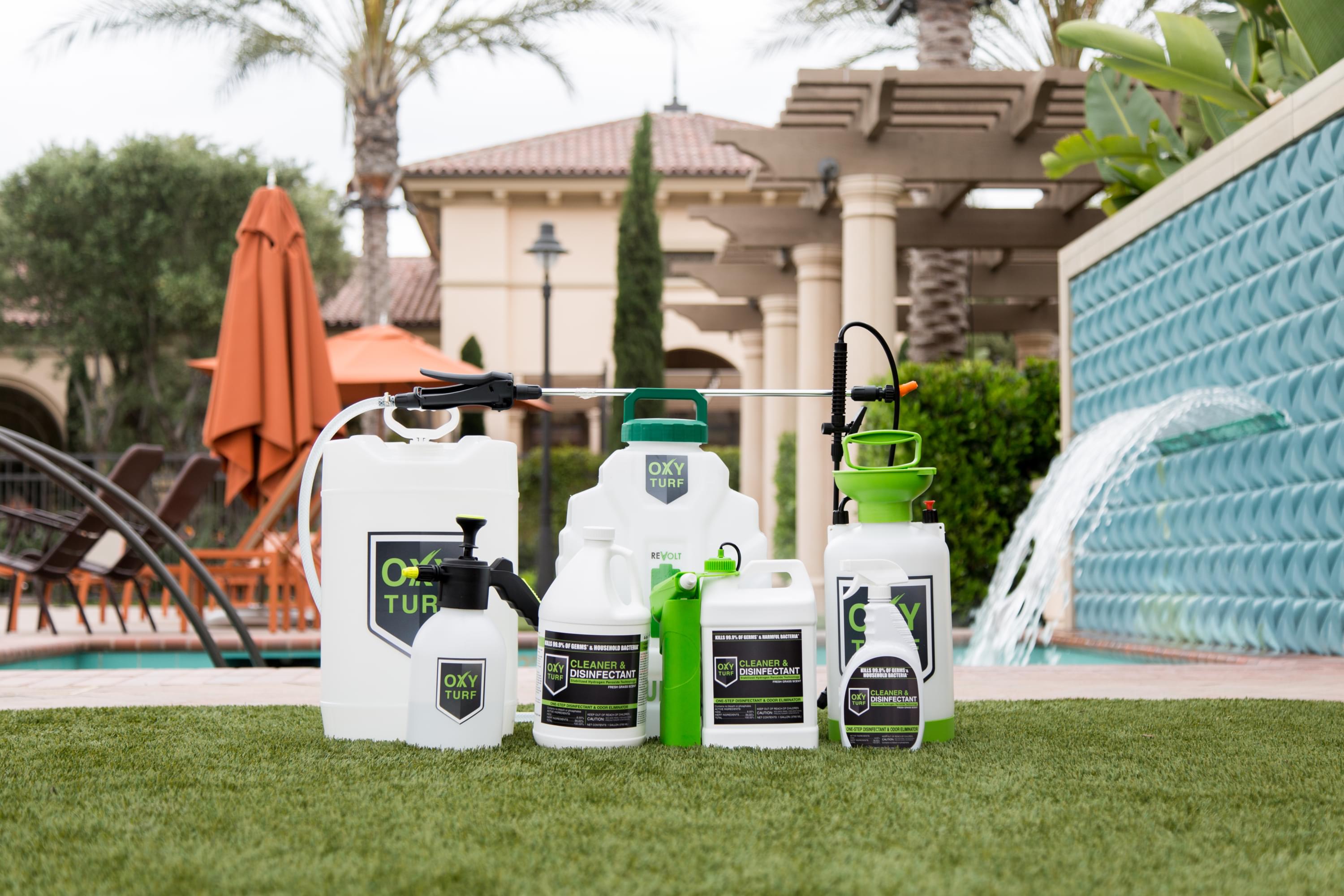 It is the only EPA-registered, one-step, ready-touse, non-toxic, synthetic turf disinfectant & cleaner with Hydrogen Peroxide and the scent of Fresh Real Grass! We partnered with renowned chemists to develop a health conscious, environmentally friendly product that is proven effective.